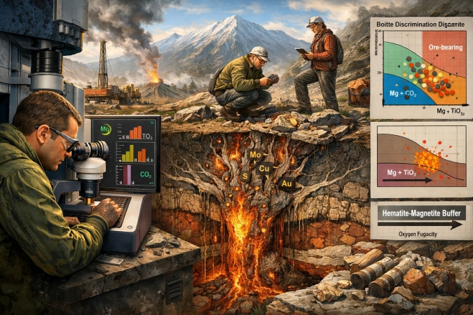 Показано, что широко применяемые дискриминационные диаграммы по составу биотита имеют ограниченную применимость из-за сильного перекрытия полей рудных и безрудных пород. Предложена новая дискриминационная диаграмма, основанная на результатах статистического анализа, где ключевыми параметрами являются содержания F, CO₂, Mg и TiO₂. Апробация диаграммы показала высокую степень корректной классификации для медно-порфировых систем и удовлетворительные результаты для молибден-порфировых. Сделан вывод о перспективности комплексного использования состава биотита при выделении фертильных порфировых магматических систем, при необходимости дальнейшей верификации предложенных критериев