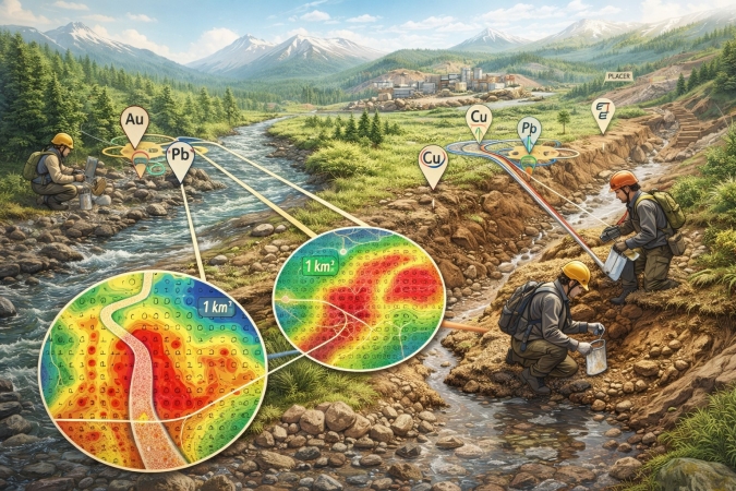 В докладе рассматриваются методические подходы к литохимической съёмке по механическим потокам рассеяния на открытых территориях с развитой речной сетью. Проанализированы существующие способы опробования, применяемые при региональных геохимических работах, и показаны их ограничения, обусловленные игнорированием различий в процессах формирования аномальных потоков рассеяния в водотоках разных порядков. Особое внимание уделено проблеме нарушения корреляции между содержаниями элементов в аллювии водотоков старших порядков и коренными источниками минерализации.